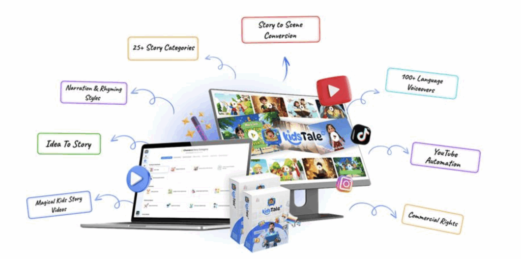 Let’s take a closer look at what’s under the hood of KidsTale AI. This powerful app is packed with features that make creating kids’ videos feel effortless. Think of it as your shortcut to producing Cocomelon-style animations that capture children’s attention while building trust with parents. Imagine starting your own kids’ YouTube channel and turning it into a reliable income stream — that’s exactly what KidsTale AI is designed to help you achieve.